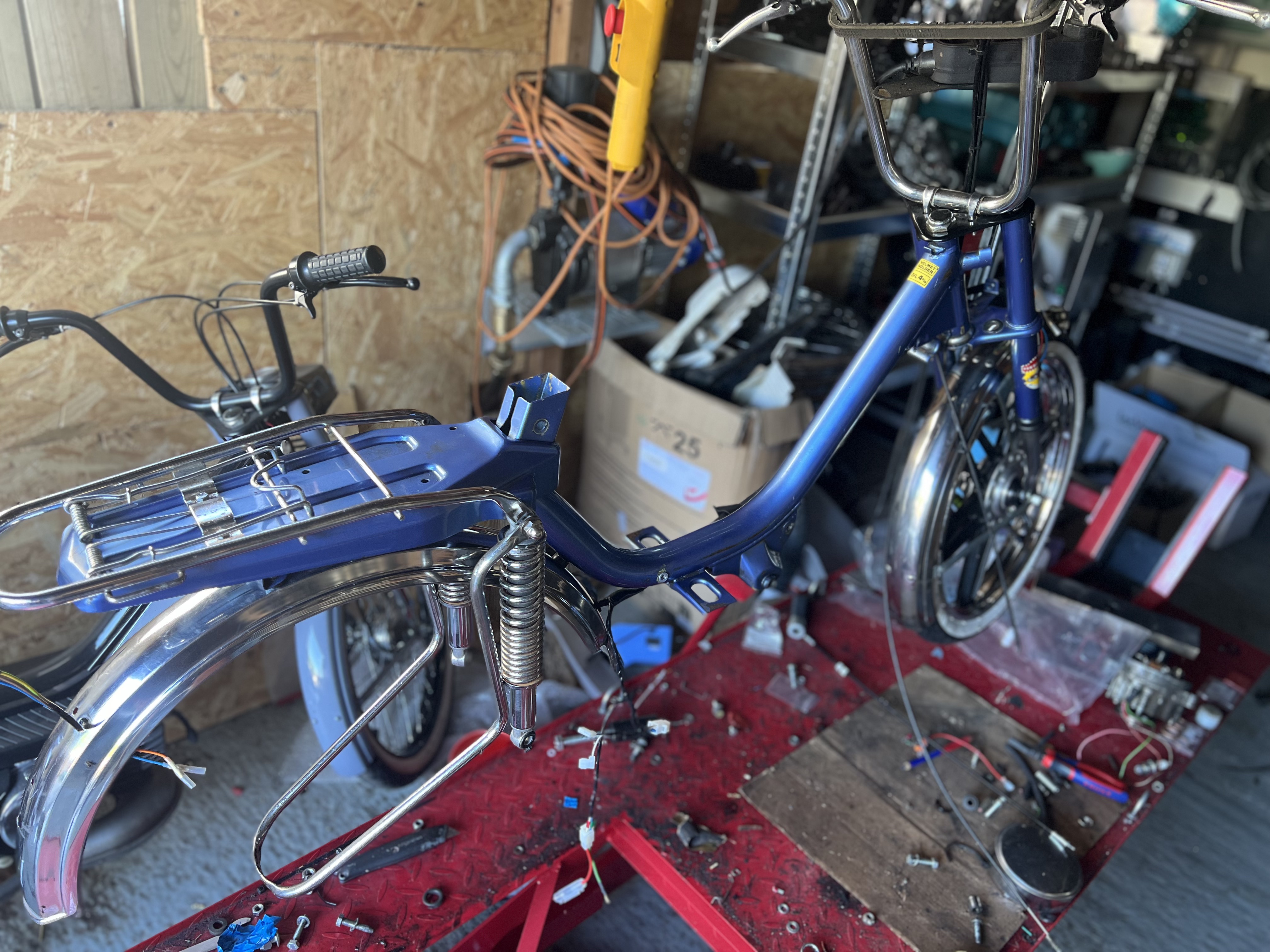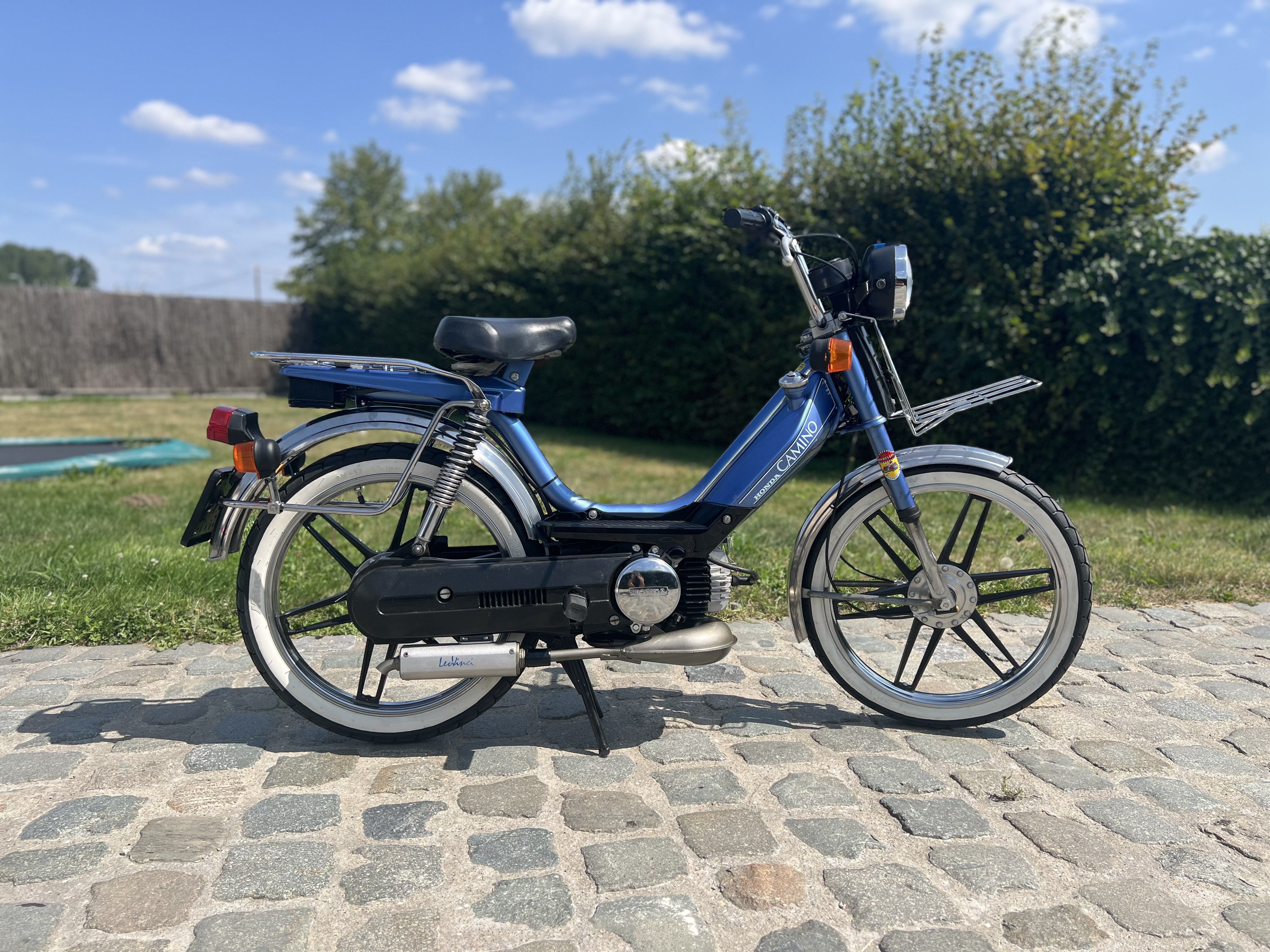 Deze prachtige Camino SXD Deluxe (uniek model) heeft een complete revisie ondergaan in onze werkplaats. Elke bout en moer is gecontroleerd, de motor is volledig gedemonteerd en met nieuwe onderdelen opgebouwd. Deze bestaat uit verschillende nos onderdelen zoals de ULO pinkers, de Leo2 uitlaat, zadel, rekje ... Het resultaat is een bromfiets die rijdt als nieuw en jarenlang plezier zal geven.